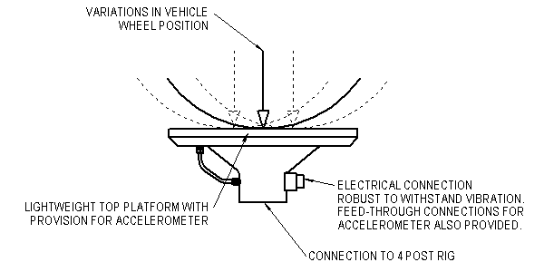 The customer required four loadcells for a vehicle chassis dynamics rig. The specifications supplied were for measurement of dynamic vertical load, Fz of +15kN to -5kN and insensitive to moments Mx and My. Lateral resonance of the structure must be greater than 1000Hz, with the live mass of the system kept low to minimise inertial force errors. Maximum diameter for the wheel pan was 340mm.