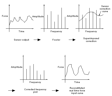 For more complex dynamic input forms the time domain input wave form can be represented by a series of varying magnitude and frequency sine waves, a technique called Fourier analysis. The complex time domain input is therefore represented by a frequency domain plot whereby each frequency magnitude can be corrected using the same maths that resulted in our rule of thumb. The frequency plot can then be reconstituted to form a real time domain plot showing the actual force input. A spectrum analyser is capable of the conversion in real time.