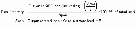 If measurements are being made in one direction only the non-linearity describes how the reliance upon a linear output, which is normally assumed for scaling on amplifier or meter, can lead to the linearity error being applied to the measurement point over the entire range of the loadcell. It is important also to note that the error varies over the range of the loadcell, and the figure quoted is the likely maximum. If a specific combination or single point measurement is of interest we can calibrate to this point therefore eliminating linearity error. Applications employing digital signal processing may create a database of the loadcell’s characteristics eliminating the reliance upon a linear output characteristic.