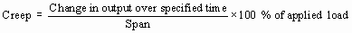 Creep is the change in loadcell output that occurs with time when a constant load is applied with environmental and other variables remaining constant. Creep is specified over a fixed time period, often 20 minutes.