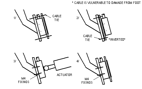 a. Cable Ties: When used as in case number 1 in the fixing arrangement drawing load typical nylon cable ties can produce a 2mV zero shift. This is equivalent to 10% of the rated load. This can normally be tared off in the monitoring electronics. Data-sheet performance is maintained for nett loads above 5% of the rated load. Below this point zero return is retarded due to the cable ties equilibrating.