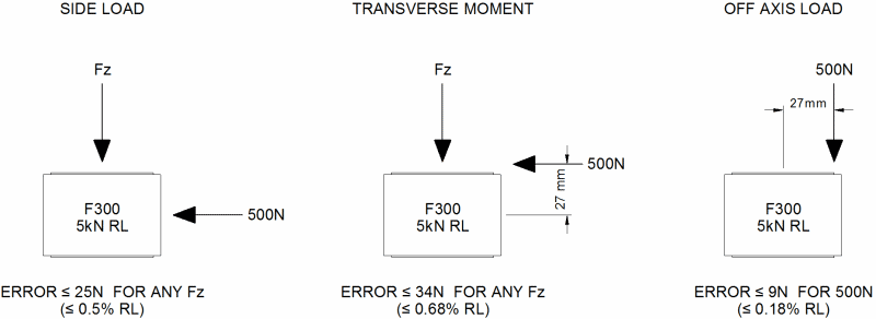 For the F300 loadcell we are able to give the following extraneous force characteristics that are true across the entire standard data-sheet range: