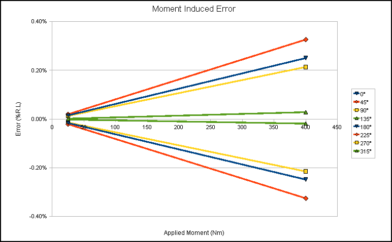 For a 20kN loadcell we expect the moment induced error to be ±(0.00387 x Applied Moment (Nm))